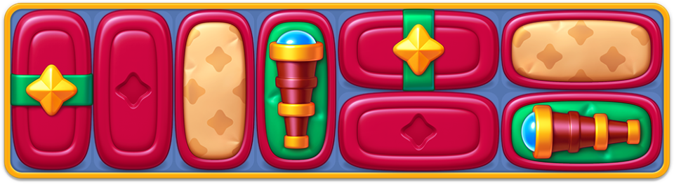 Spyglasses come in closed cases. Each case has four layers, and every match or blast next to it removes one of them. On the fourth match, the case opens, and the Spyglass is collected.