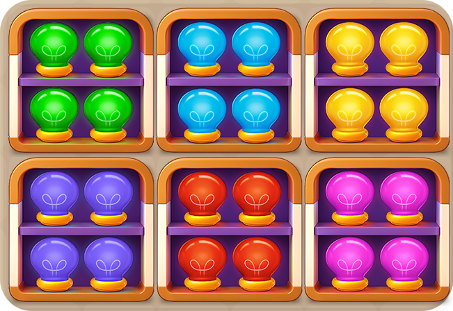 Help Austin turn off the light bulbs by making matches next to them with pieces of the same color, or by setting off power-ups nearby.