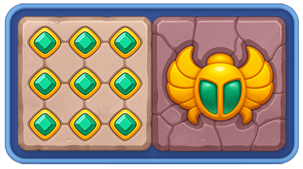 一部のレベルでは、最初は宝石が埋め込まれた石板としてフィールドに現れるスカラベを見つけることが目標となります。
